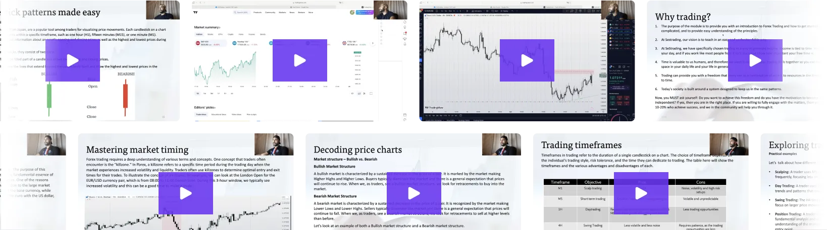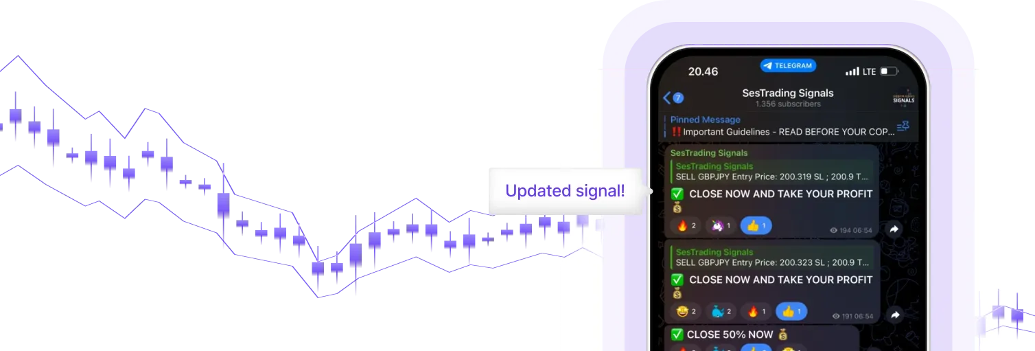 عندما تنضم إلى SesTrading، ستحصل على حق الوصول إلى مجموعتنا التدريبية حيث نرشدك إلى كل شيء. هل لديك أسئلة؟ نحن نوفر لك الدعم على مدار الساعة طوال أيام الأسبوع لجميع الأعضاء. بعد ذلك، يمكنك البدء في نسخ أفكاري التجارية مجانًا، والتي أشاركها من 1 إلى 8 مرات يوميًا في مجموعتنا الخاصة بالإشارات. بالإضافة إلى ذلك، هناك دورة تدريبية مجانية للمبتدئين إذا كنت ترغب في التعمق أكثر في التداول.